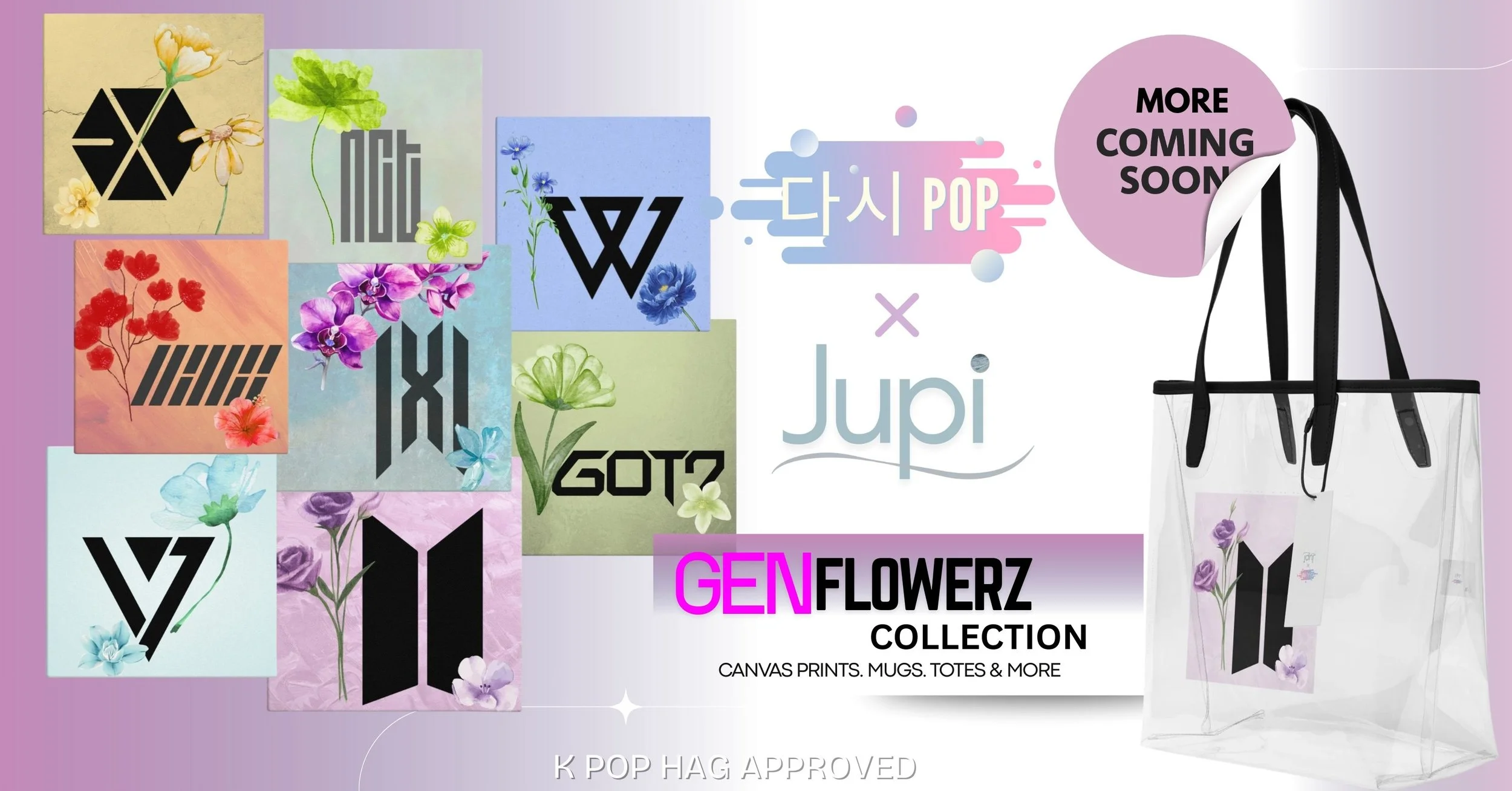 Colorful poster with a pastel gradient background, black and pastel geometric shapes, and the text "DAS K-POP" in large white letters in the center.